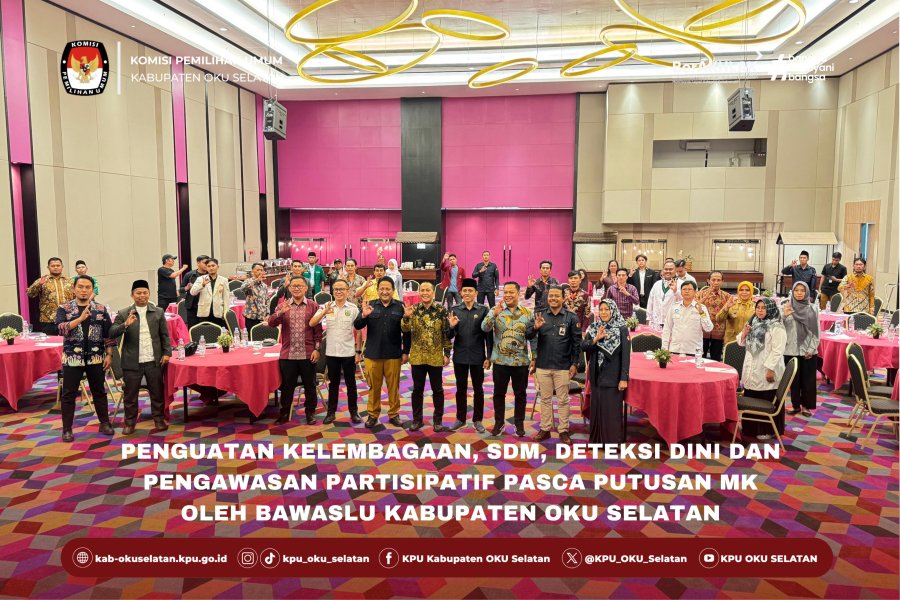 #TemanPemilih Anggota KPU Kabupaten OKU Selatan Divisi Data dan Informasi, Bapak Yuristian Ramadoni menghadiri undangan dari BAWASLU OKU Selatan dalam kegiatan Penguatan Kelembagaan, Sumber Daya Manusia, Deteksi Dini Pelanggaran Dan Peningkatan Pengawasan Partisipatif Untuk Mewujudkan Pemilu Yang Berintegritas Pasca Putusan Mahkamah Konstitusi Nomor 135/PUU-XXII/2024