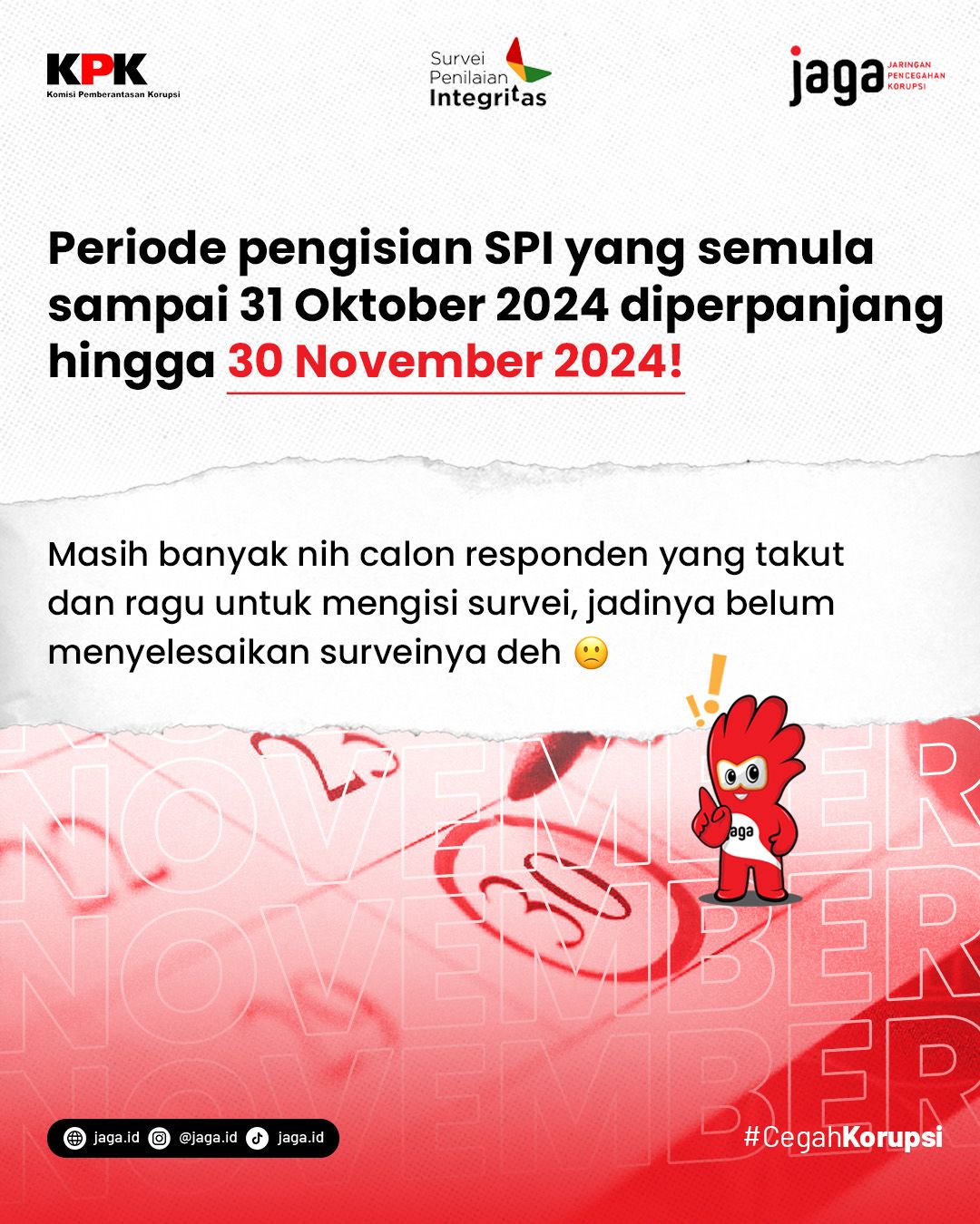 #TemanPemilih pengisian Survei Penilaian Integritas (SPI) 2025 oleh Komisi Pemberantasan Korupsi (KPK) diperpanjang sampai 30 November 2025