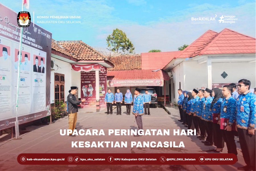 #TemanPemilih, Bertempat di Halaman Kantor KPU Kabupaten OKU Selatan, KPU Kabupaten OKU Selatan melaksanakan Upacara Peringatan Hari Kesaktian Pancasila, 1 Oktober 2025. Kegiatan di pimpin oleh Ketua KPU OKU Selatan dan diikuti oleh seluruh pegawai KPU OKU Selatan bersama siswa-siswi PKL KPU Kabupaten OKU Selatan