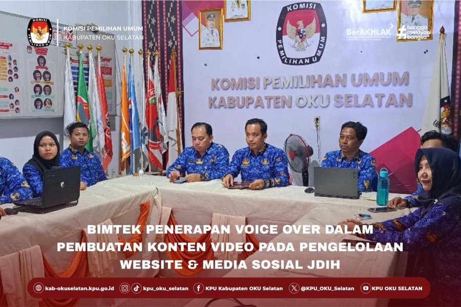 #TemanPemilih Sekretaris, Kasubbag Teknis dan Hukum beserta Staff KPU Kabupaten OKU Selatan mengikuti kegiatan Bimbingan Teknis Penerapan Voice Over Dalam Pembuatan Konten Video pada Pengelolaan Website dan Media Sosial JDIH.