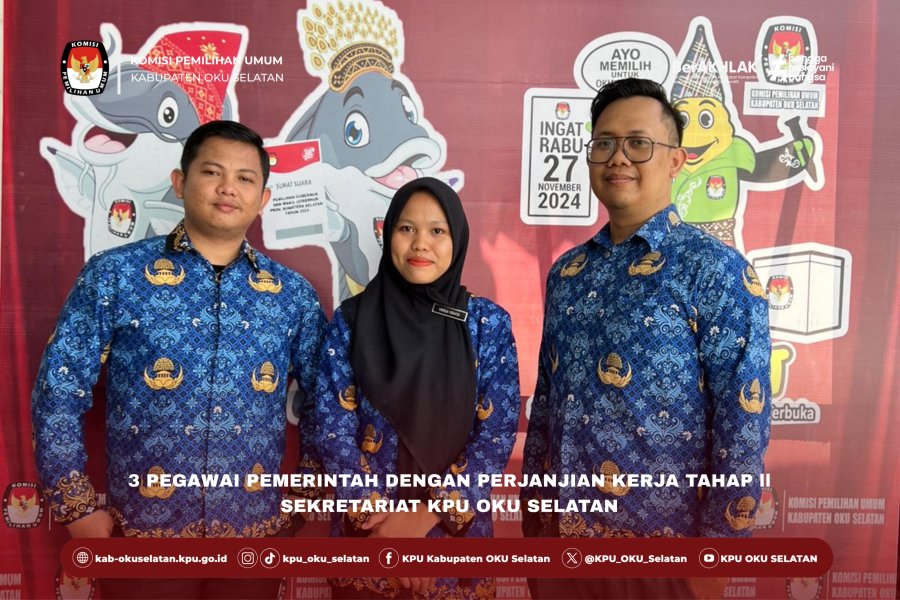 #TemanPemilih 3 Orang Pegawai Pemerintah Dengan Perjanjian Kerja (PPPK) Tahap II Sekretariat KPU Kabupaten OKU Selatan penuhi panggilan untuk melapor dan melaksanakan tugas di Sekretariat KPU Kabupaten OKU Selatan.