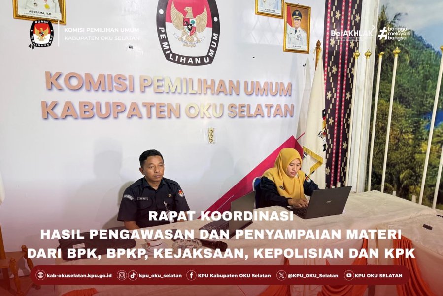 #TemanPemilih KPU Kabupaten OKU Selatan mengikuti Rapat Koordinasi Hasil Pengawasan Dan Penyampaian Materi Dari BPK, BPKP, Kejaksaan, Kepolisian dan KPK bersama KPU RI, KPU Provinsi dan KPU Kabupaten/Kota Se Indonesia