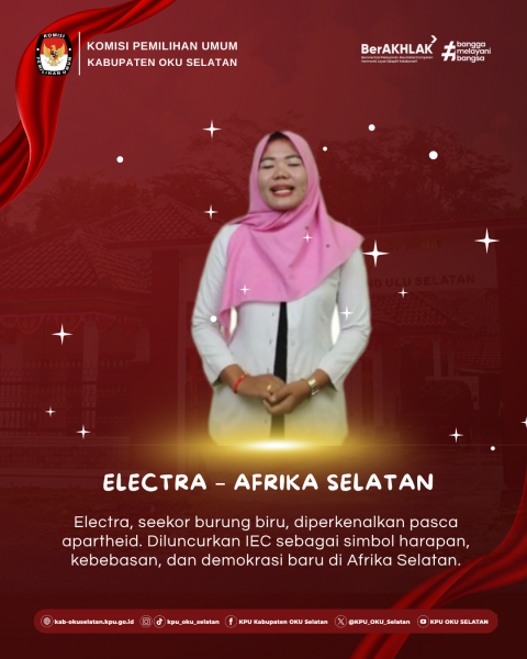 Electra, seekor burung biru, diperkenalkan pasca apartheid. Diluncurkan IEC sebagai simbol harapan, kebebasan, dan demokrasi baru di Afrika Selatan.