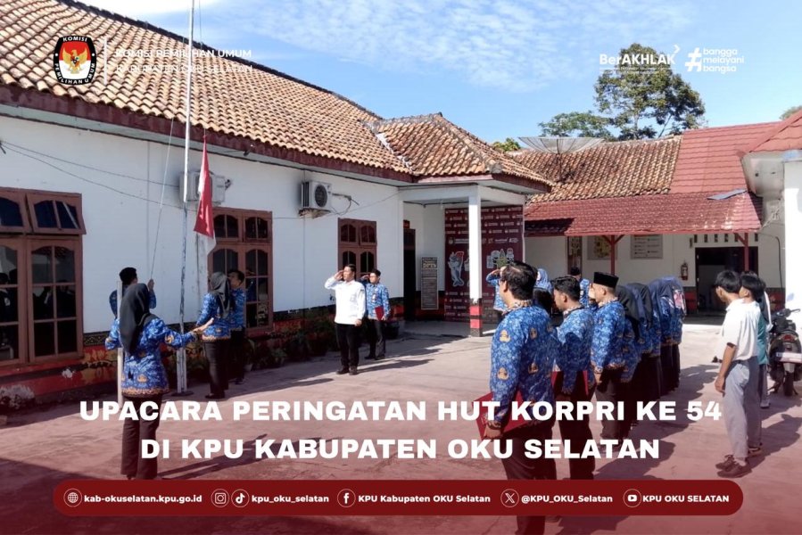 #TemanPemilih Anggota KPU Kabupaten OKU Selatan bersama jajaran Sekretariat KPU Kabupaten OKU Selatan melaksanakan Upacara Peringatan HUT KORPRI KE 54 Tahun di Halaman Kantor KPU Kabupaten OKU Selatan