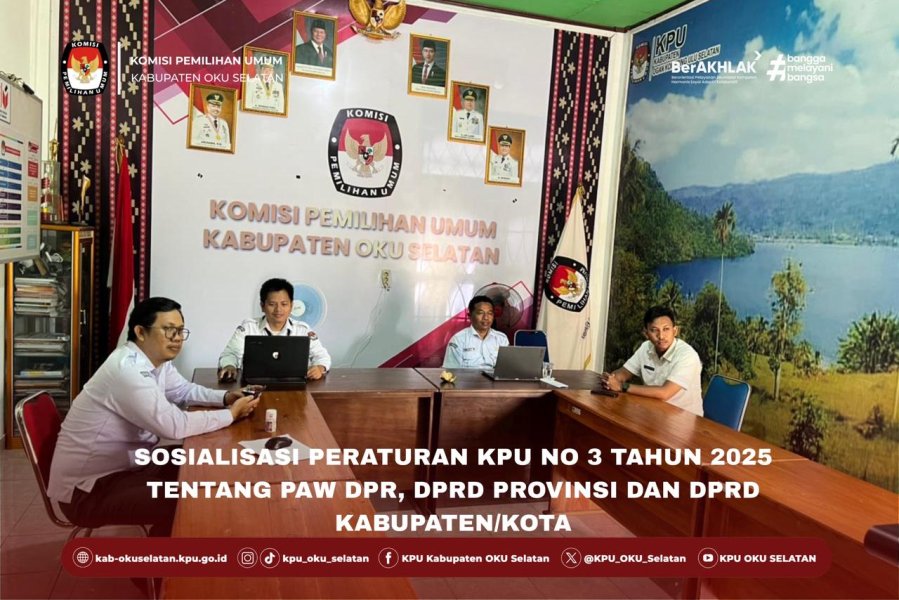 #TemanPemilih KPU Kabupaten OKU Selatan terus berupaya meningkatkan kapasitas dalam penyelenggaraan pemilu, salah satu caranya adalah dengan mengikuti Sosialisasi PKPU No. 3 Tahun 2025 tentang Pergantian Antar Waktu (PAW) DPR RI, DPRD Provinsi, dan DPRD Kabupaten/Kota. Kegiatan dikuti oleh Kasubbag Teknis dan Hukum beserta Staff KPU Kabupaten OKU Selatan. Diharapkan melalui sosialisasi ini, KPU OKU Selatan dapat memperdalam pemahaman terhadap mekanisme hukum dan prosedur pergantian antar waktu (PAW), sehingga setiap proses dapat dilaksanakan secara tertib dan akuntabel. Diharapkan langkah ini memberi manfaat nyata bagi masyarakat melalui layanan demokrasi yang semakin baik, transparan, dan berkualitas.