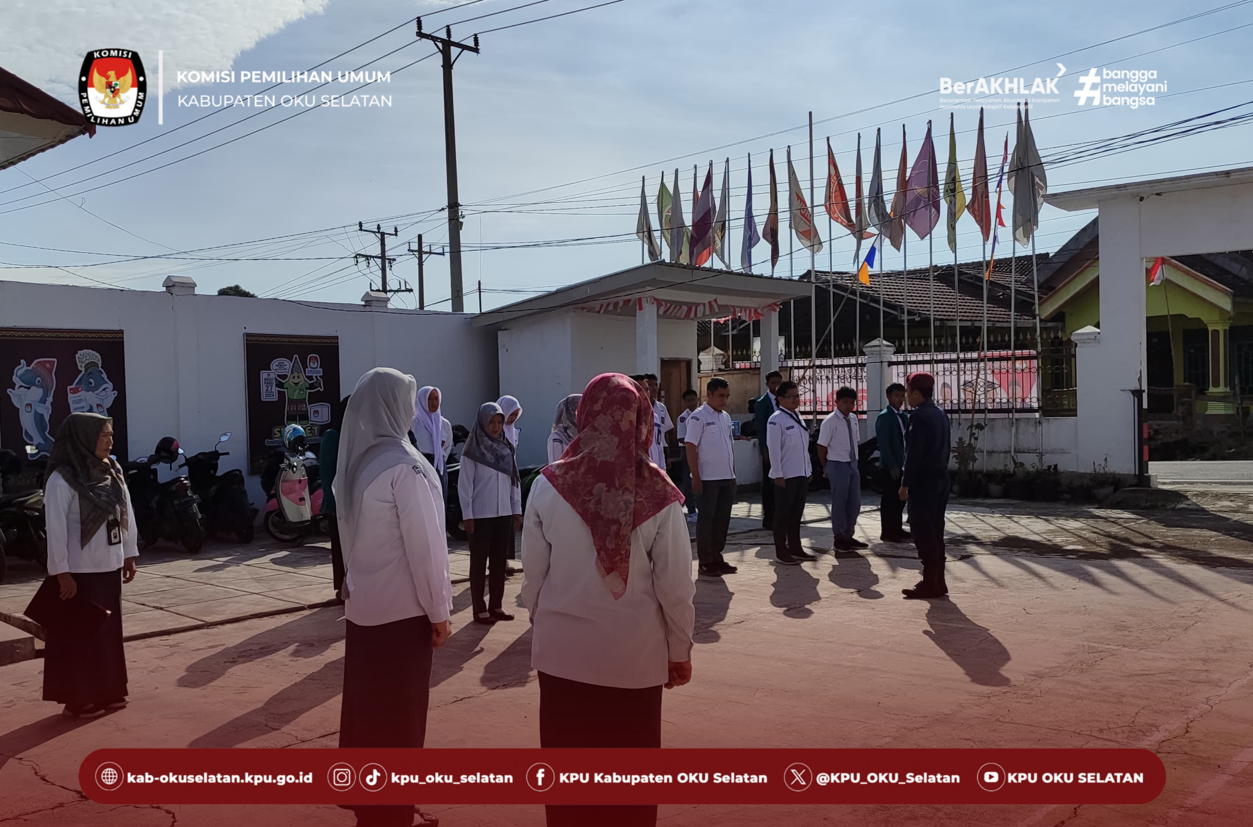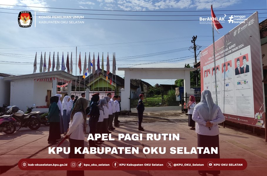 #TemanPemilih Pada kesempatan kali ini, Kasubbag Keuangan, Umum dan Logistik KPU Kabupaten OKU Selatan memimpin kegiatan Apel Pagi Rutin KPU Kabupaten OKU Selatan. Apel Pagi Rutin di ikuti oleh para Pejabat Strutural dan Staff KPU Kabupaten OKU Selatan beserta Siswa PKL di KPU Kabupaten OKU Selatan