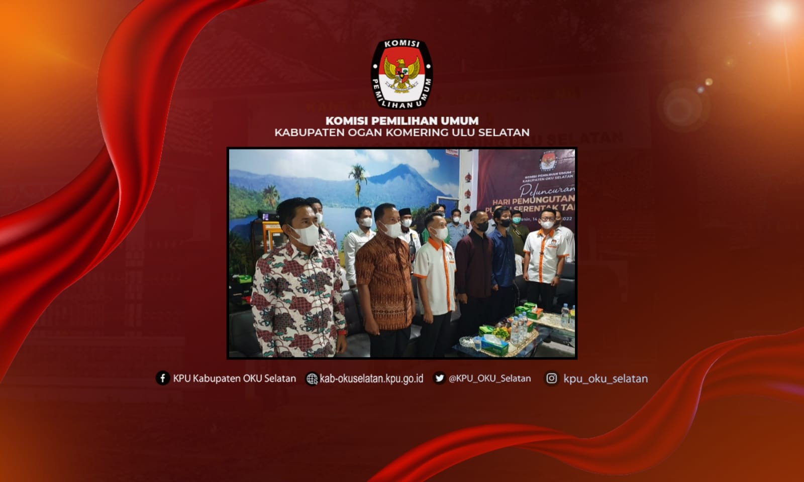 KPU OKU Selatan melaksanakan kegiatan Nonton Bareng Peluncuran Hari Pemungutan Suara Pemilihan Umum Serentak Tahun 2024 di Ruangan Rapat Kantor KPU Kabupaten Ogan Komering Ulu Selatan, Pada Kesempatan ini turut hadir Unsur Forkompimda OKU Selatan, BAWASLU OKU Selatan serta Para Pimpinan Partai Politik di OKU Selatan. Kegiatan dimulai pukul 19.00 WIB hingga selesai.