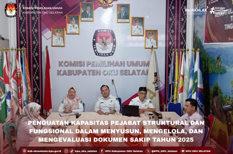#TemanPemilih Sekretaris KPU Kabupaten OKU Selatan bersama jajaran Pejabat Struktural, Fungsional dan Staff Mengikuti Zoom dengan KPU RI Dalam Rangka meningkatkan pemahaman dan kemampuan Aparatur Sipil Negara (ASN_ dalam Mengelola dan Menerapkan Sistem Akuntabilitas Kinerja Instansi Pemerintah (SAKIP) Pada KPU, KPU Provinsi/KIP Aceh dan KPU/KIP Kabupaten/Kota