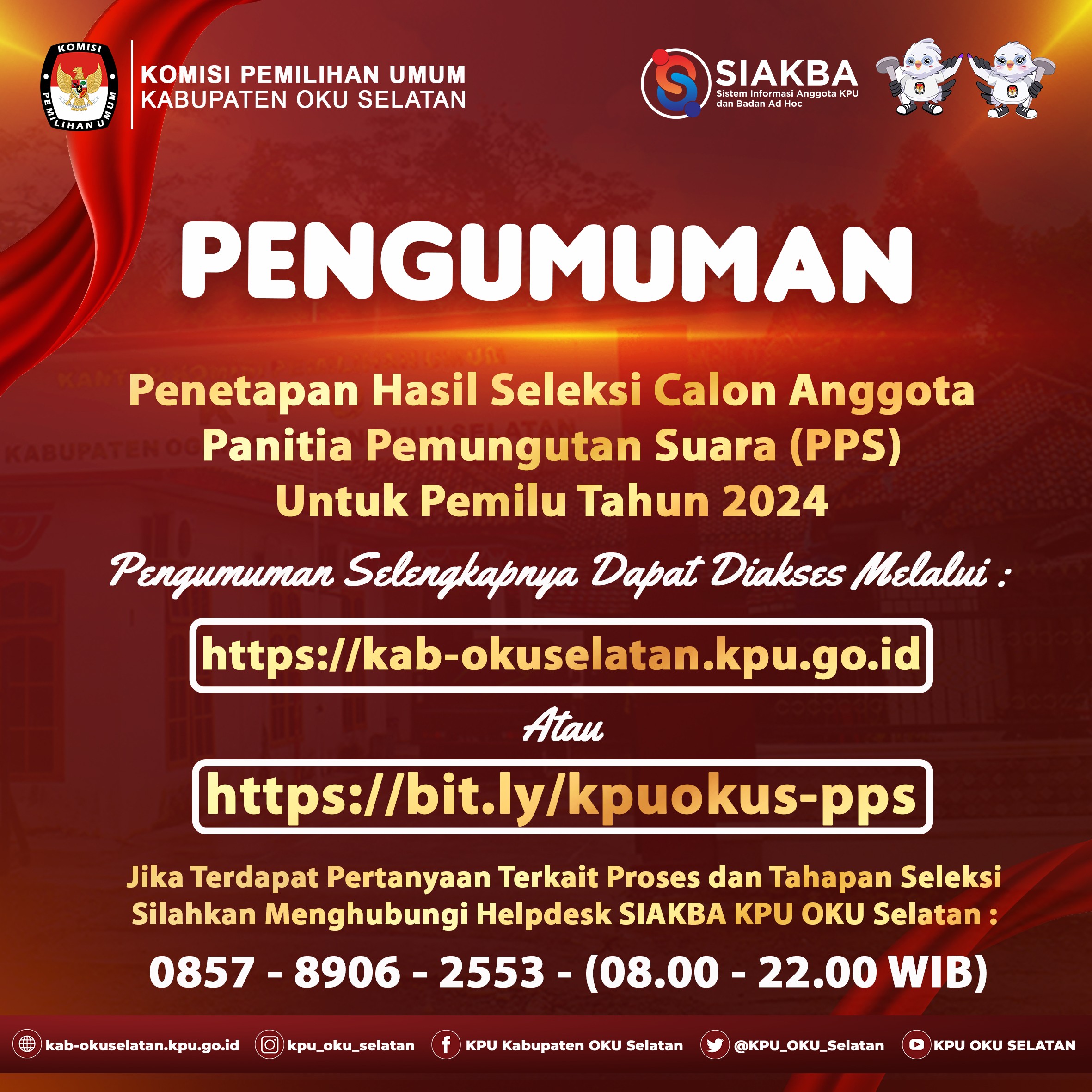 #TemanPemilih Berikut Kami Sampaikan Pengumuman Penetapan Hasil Seleksi Calon Anggota Panitia Pemungutan Suara (PPS) Untuk Pemilihan Umum Tahun 2024. Pengumuman Selengkapnya dapat di download pada link berikut :
