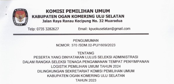 PENGUMUMAN PESERTA YANG DINYATAKAN LULUS ADMINISTRASI PENGAMANAN TEMPAT PENYIMPANAN LOGISTIK KPU KABUPATEN OKU SELATAN
