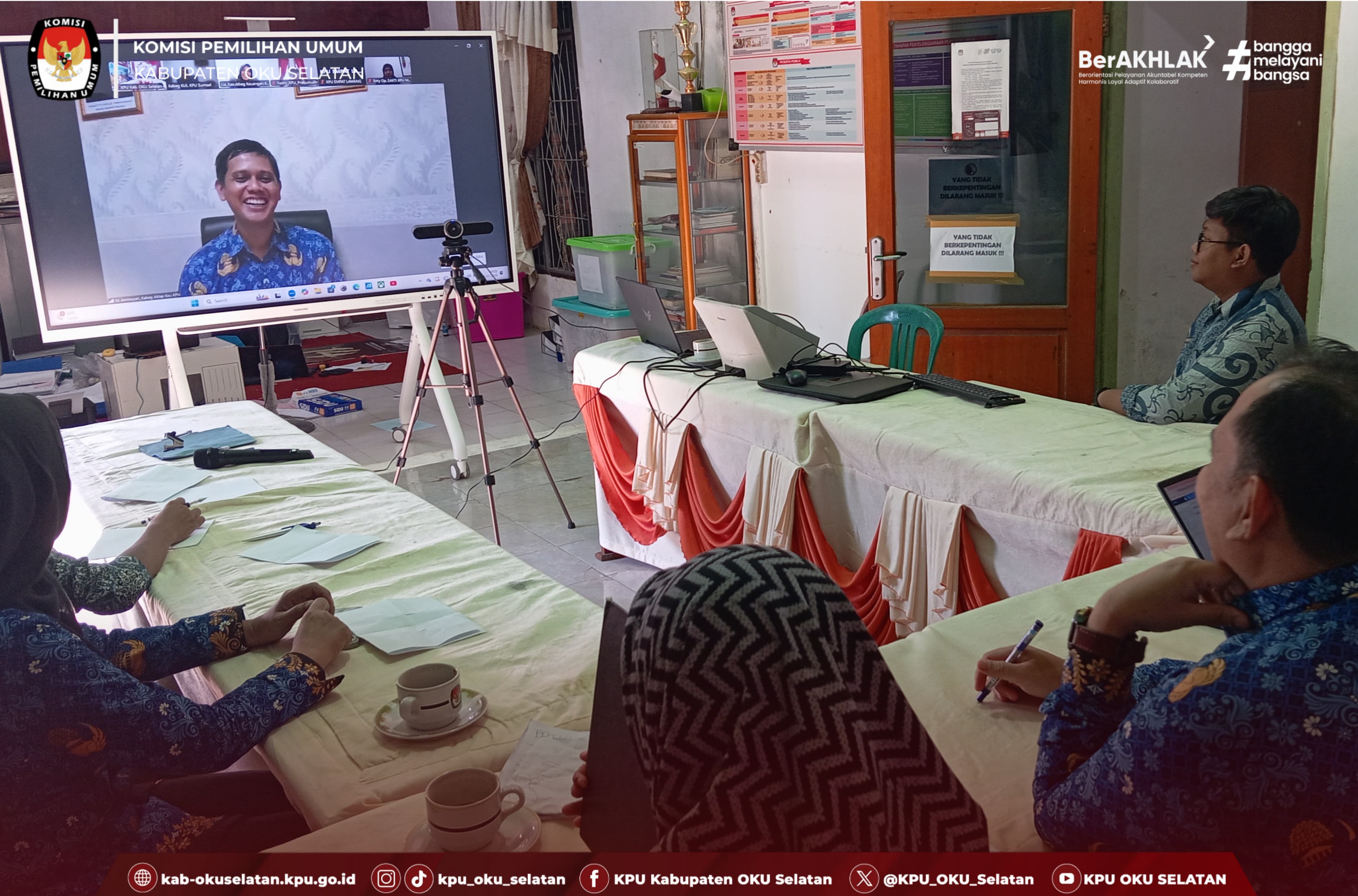 #TemanPemilih Sekretaris KPU Kabupaten OKU Selatan bersama para pengelola Keuangan mengikuti Rapat Koordinasi terkait Pembahasan Jurnal SP4HL bersama KPU Kabupaten/Kota Se Sumatera Selatan secara daring