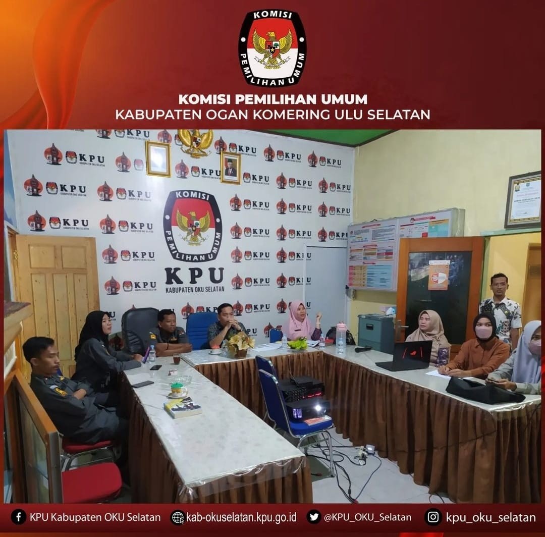 KPU OKU Selatan menghadiri kegiatan Rapat Koordinasi Persiapan Pengamanan Pemilihan Serentak Tahun 2024 di Lingkungan KPU Provinsi dan KPU Kabupaten/Kota Se-Sumatera Selatan. Kegiatan dihadiri Oleh Kasubbag Hukum dan Pengawasan, Kasubbag Umum, Logistik dan Keuangan Serta 3 Orang Tenaga Keamanan dilingkungan KPU OKU Selatan.