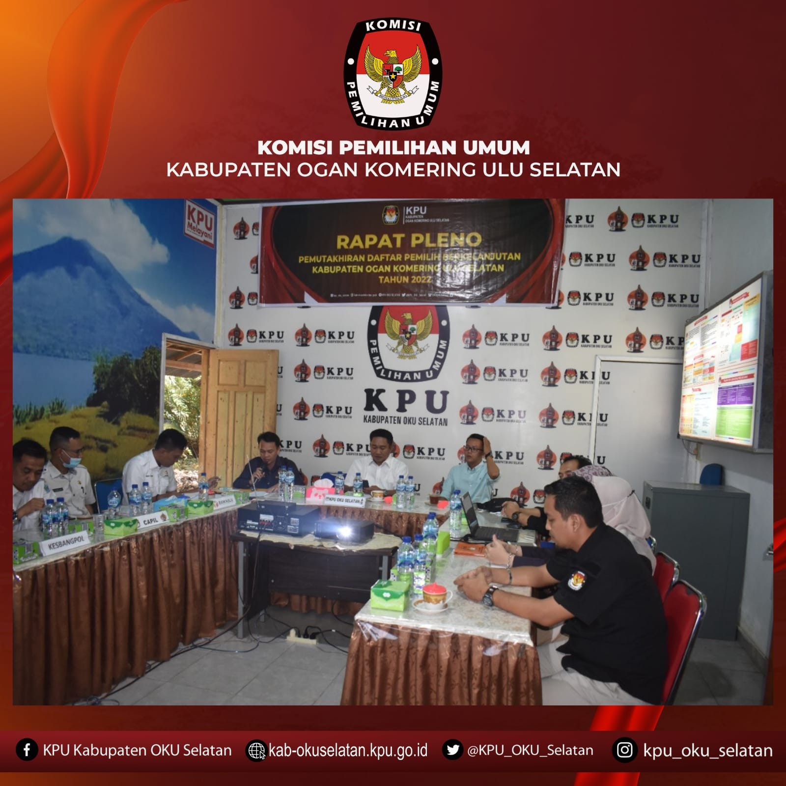 KPU OKU Selatan melaksanakan Rapat Pleno Pemutakhiran Daftar Pemilih Berkelanjutan Periode Maret 2022 di Ruang Rapat kantor KPU OKU Selatan, Rapat dipimpin langsung oleh Komisioner KPU OKU Selatan beserta Sekretaris dan Kasubbag di lingkungan Sekretariat KPU OKU Selatan, Kegiatan juga dihadiri langsung oleh Ketua BAWASLU OKU Selatan, Perwakilan Disdukcapil dan Kesbangpol OKU Selatan