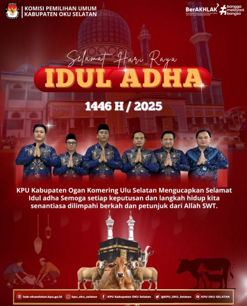 #TemanPemilih Keluarga besar KPU OKU Selatan mengucapkan Selamat Hari Raya Idul Adha 10 Zulhijjah 1446 Hijriah