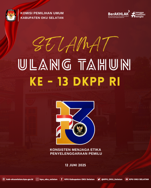 #TemanPemilih KPU Kabupaten Ogan Komering Ulu Selatan mengucapakan Selamat Ulang Tahun Ke - 13 DKPP RI.
