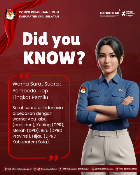 Surat suara di Indonesia dibedakan dengan warna: Abu-abu (presiden), Kuning (DPR), Merah (DPD), Biru (DPRD Provinsi), Hijau (DPRD Kabupaten/Kota).
